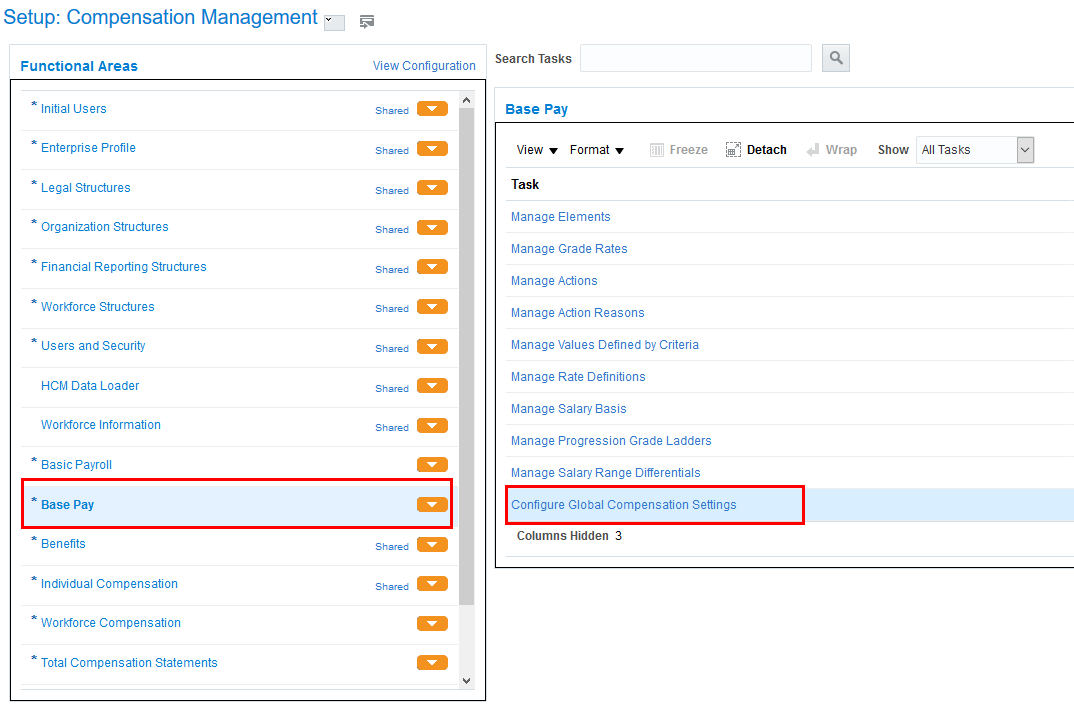 - Configure Global Compensation Settings Added to Base Pay Task List
