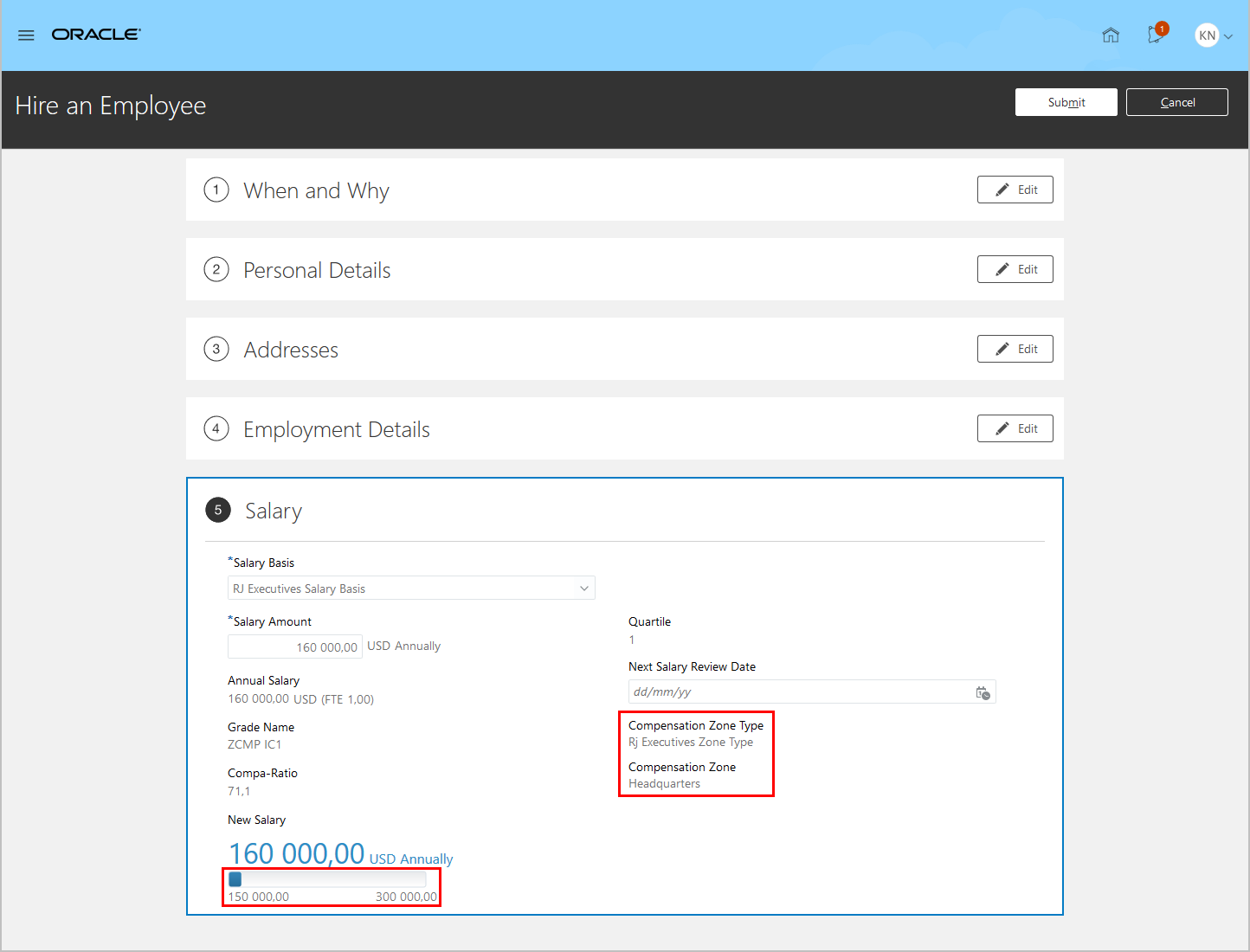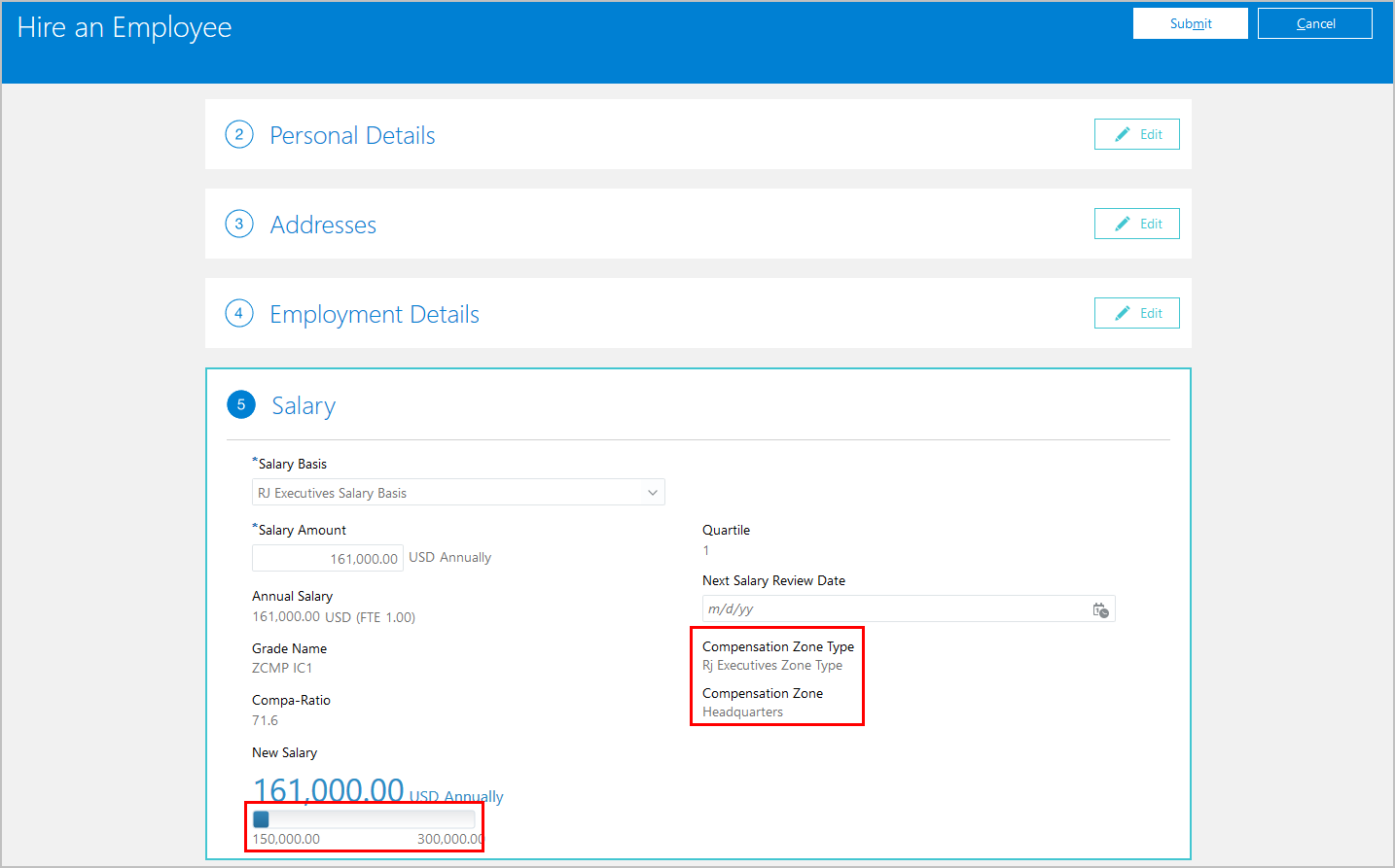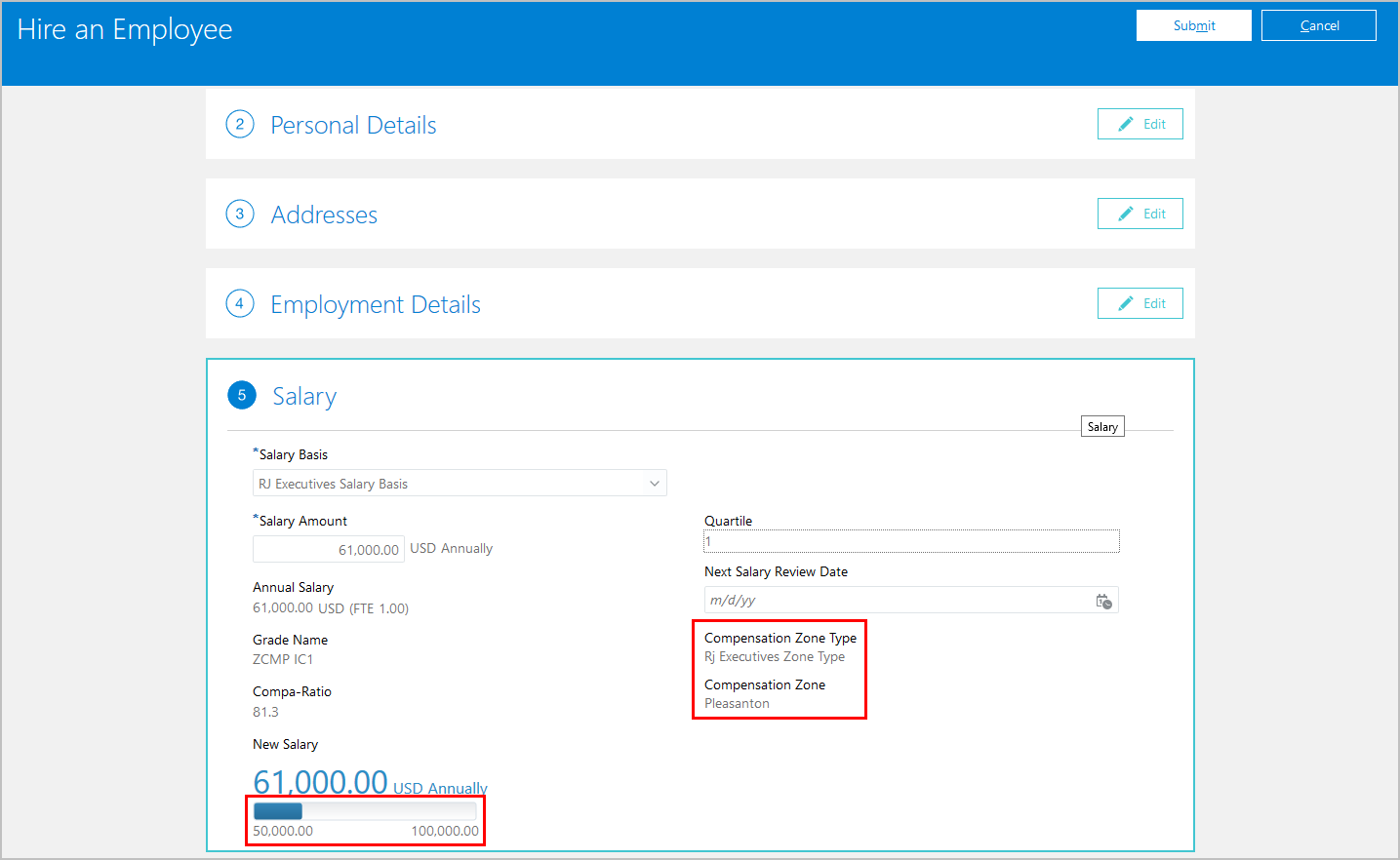 The default employment level is Payroll Assignment. The application retrieves the grade ladder details based on assigned grade that is held on an employee’s assignment record.