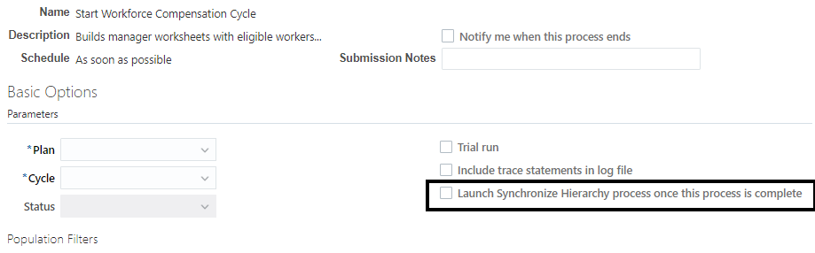 - Launch Synchronize Hierarchy Process as a Part of the Start Workforce Compensation Plan Process