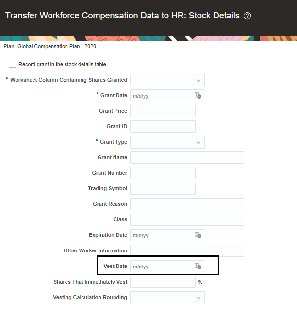 - Supply Vesting Date for Stock When Transferring Data to HR