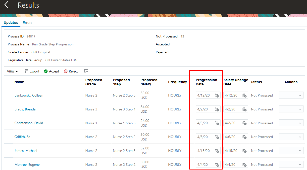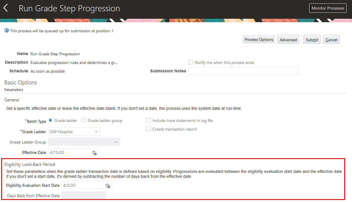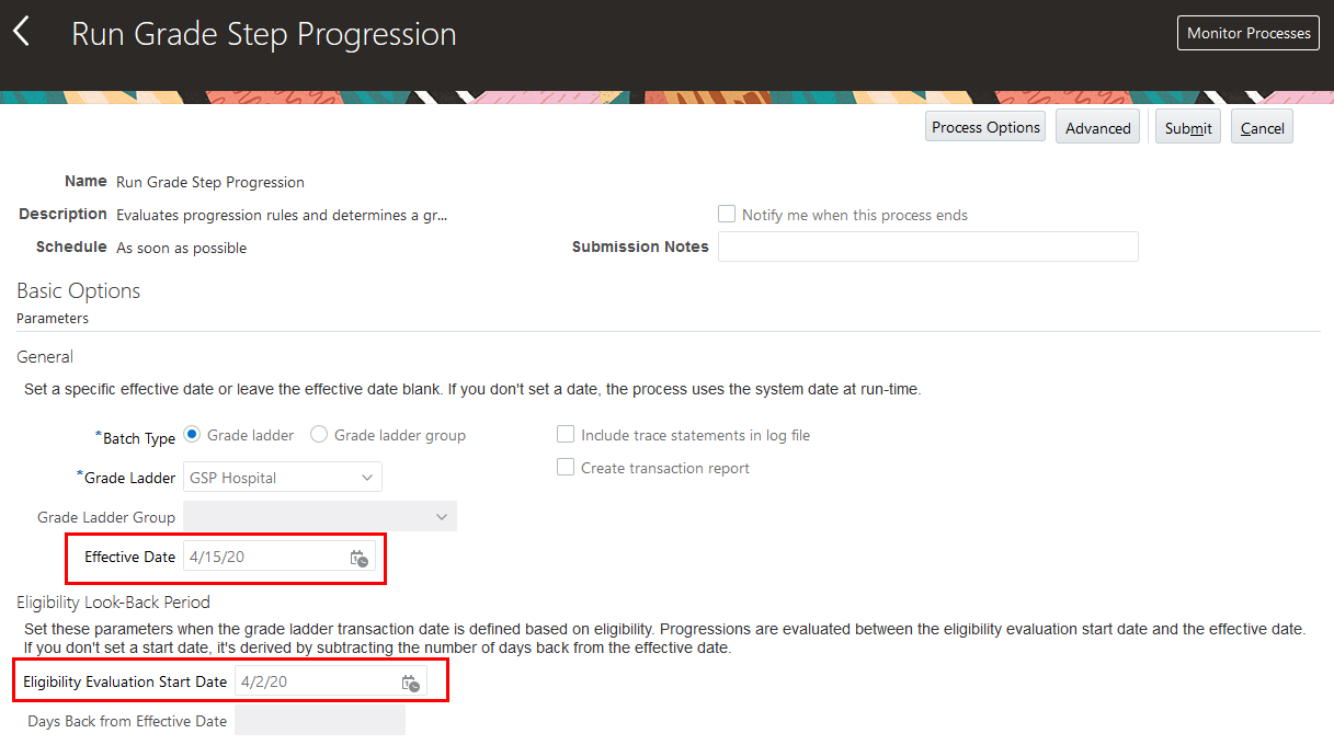 Example 2: Generate HCM Rates process with a start date that is before the salary change