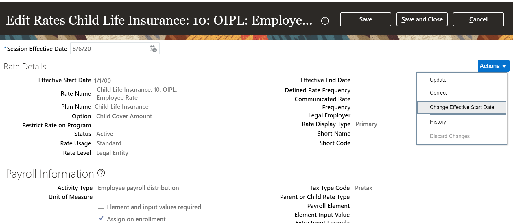 You update an employee’s salary entry and then run the Generate HCM Rates process with a start date that is before the salary change. In this case, the application creates a rate with an effect start date that is the same as the start date defined for the process.
