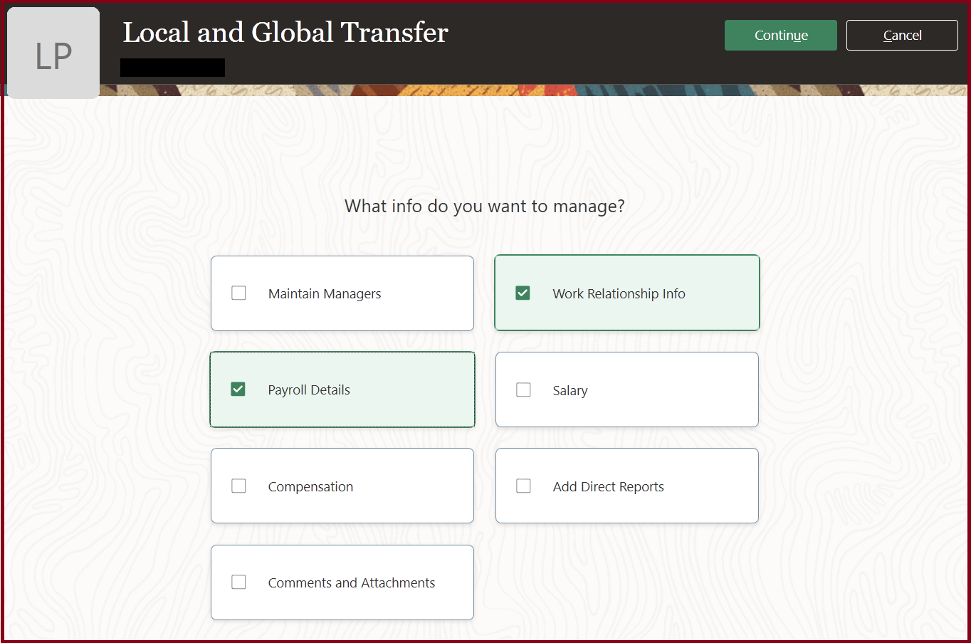 NOTE: Not all Global Human Resource features are available for Talent and Compensation products.