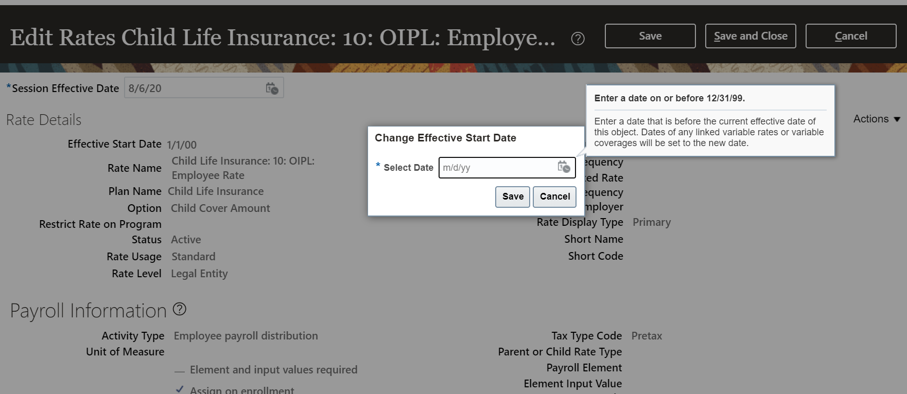 Define a start date for the Generate HCM Rates process. For example, set the start date to 2020-01-01 to ensure that the application calculates the rates only from 1st January 2020 or a later date.