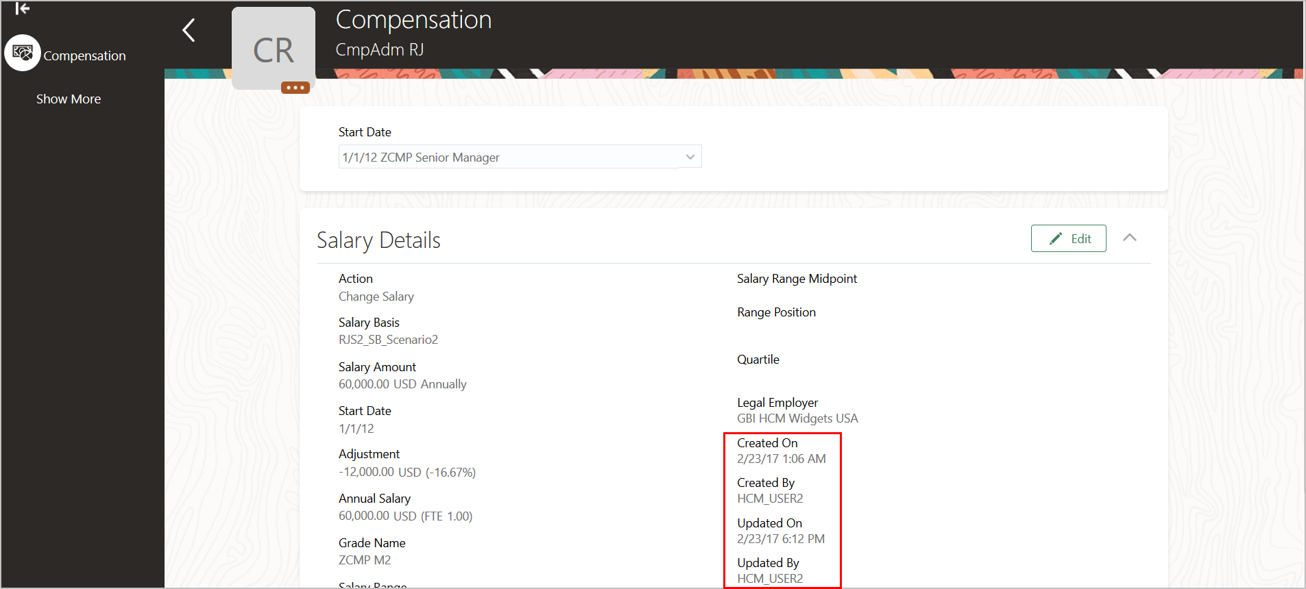 Enhance your reporting on data related to the audit details of the compensation worksheet. The enhancements allows you to report on who made changes to the worksheet, along with what changes were done with the date on which it was done.