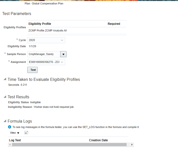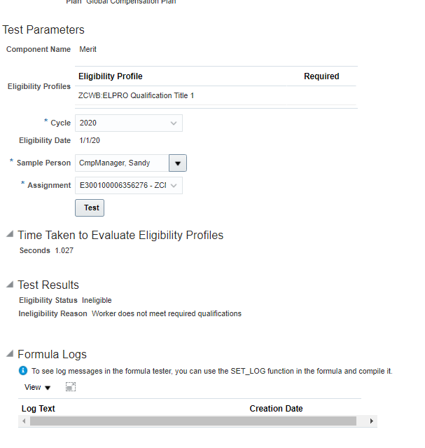 - Test Eligibility Profiles in Workforce Compensation Plan Setup