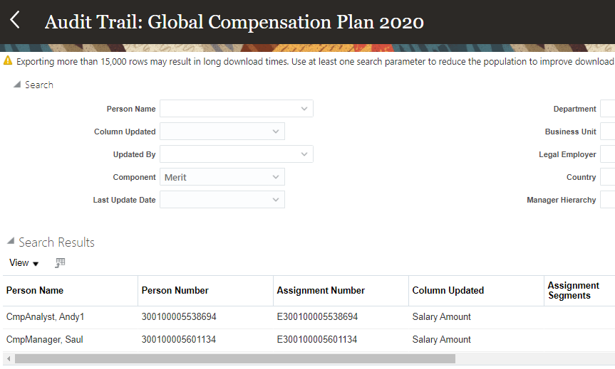 - View Person And Assignment Number in Audit Export Report