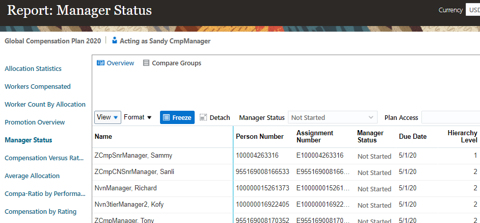 - View Person and Assignment Number in the Manager Status Report