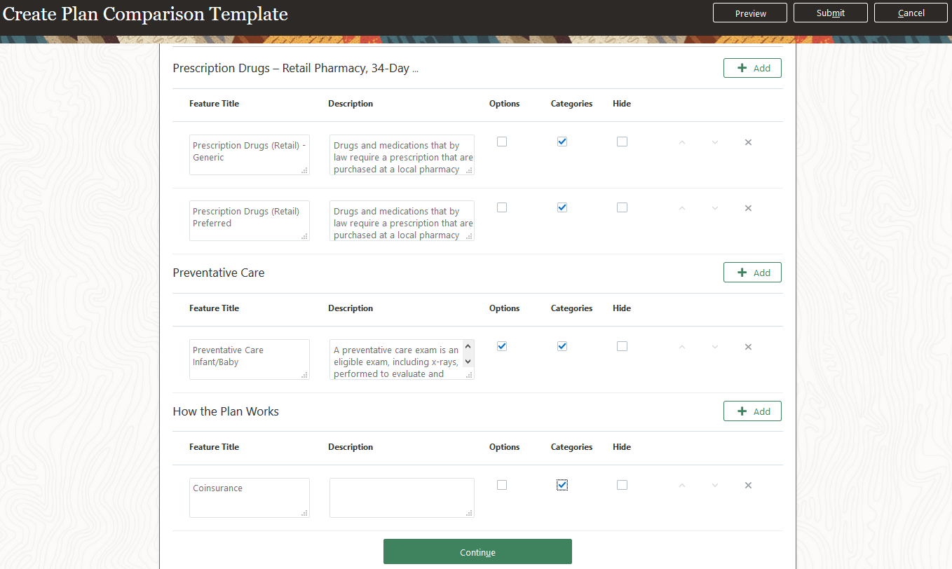 - To view Plan-Option-Element linkage (setup information) select columns from the subfolders inside "Plans and Options" subfolder, under the "Individual Compensation Plans" folder.