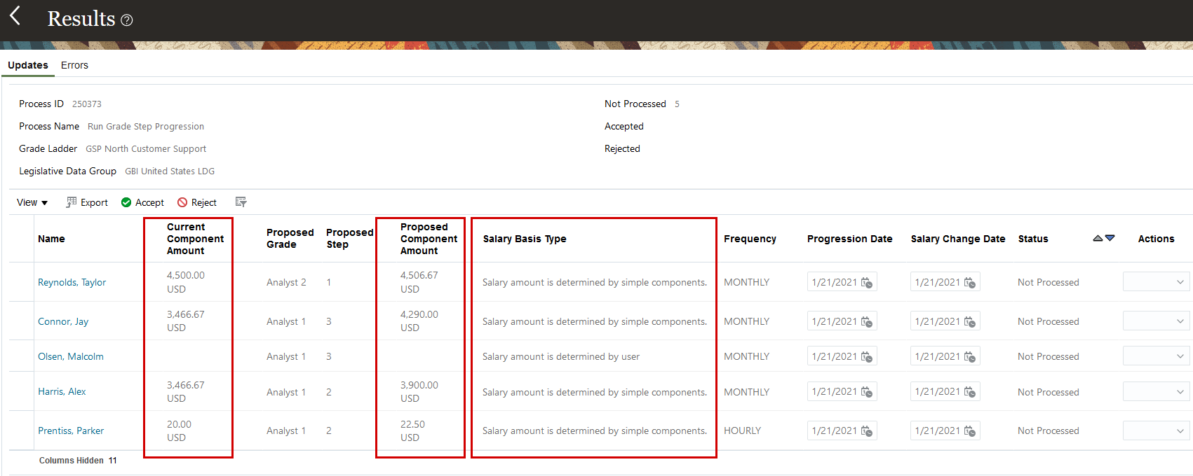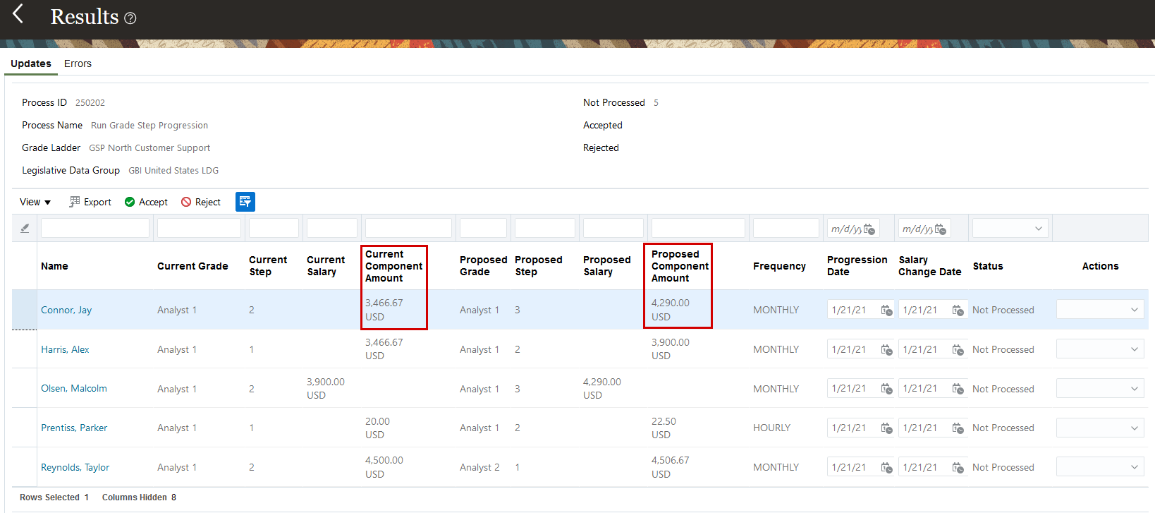 - Mapping salary actions (or actions and reasons) in Extended Lookups to report pay review dates.