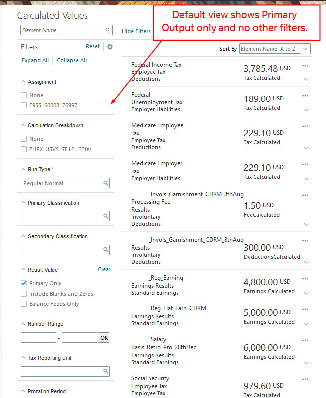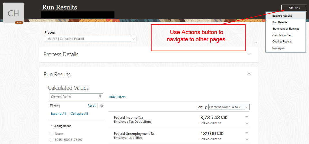 - Payroll - Element Entries Real Time: the user will be able to access the element entries with respect to that assignment and the corresponding payroll relationship level element entries.