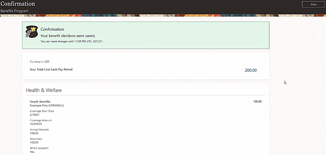 This enhancement enables participants to see their enrollment summary, in both the Confirmation page and the Summary page.
