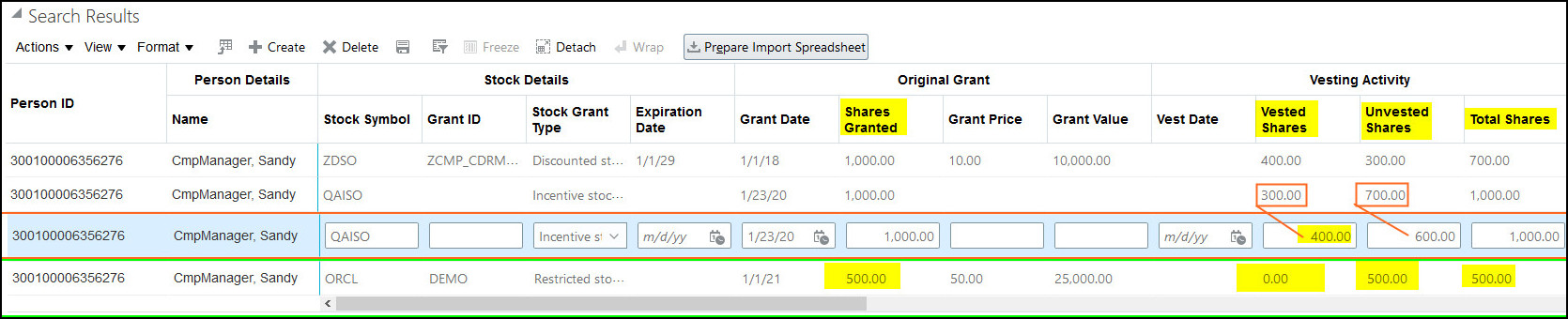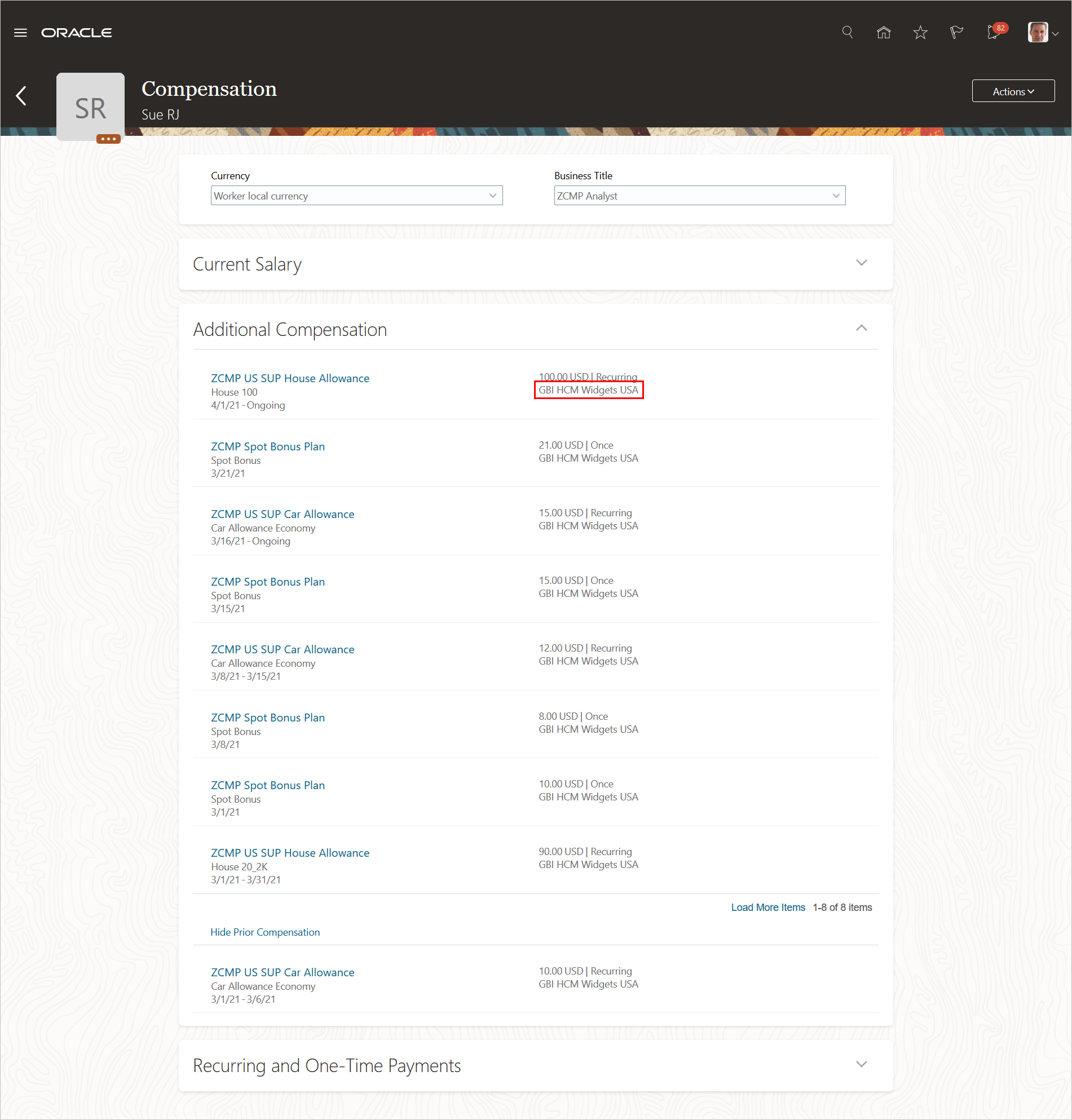 - Payroll - Element Entries History Real Time: the user will be able to access the element entries with respect to that assignment and the corresponding payroll relationship level element entries. Since this is a history subject area, the user will be able to view the past dated entries as per the assignment security. For example, an employee has the following assignment history:
