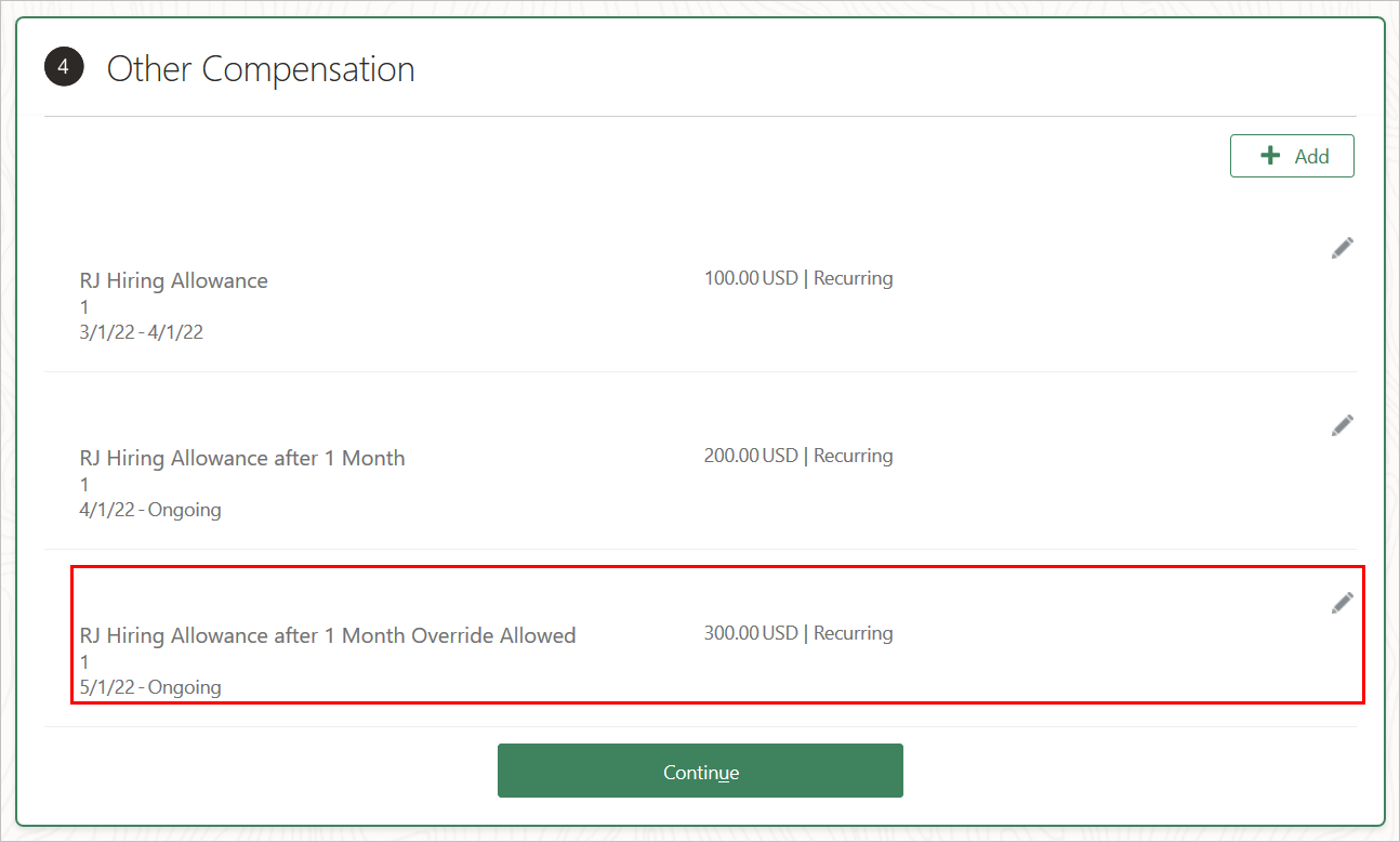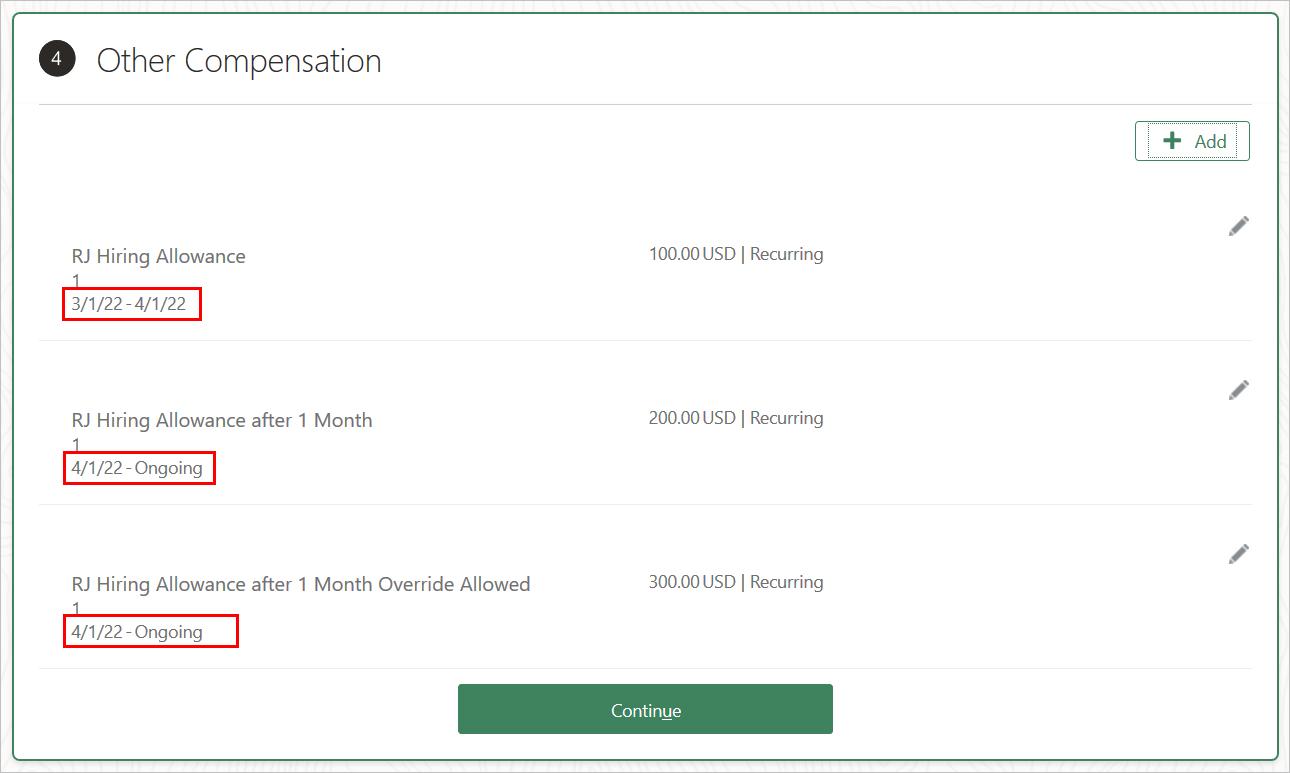 For example, as part of a new hire life event you processed, assume that the new hire is now enrolled in an insurance plan that has a waiting period of 30 days. The insurance plan's coverage is subject to imputed income. You want the new hire's imputed rate to consider the new insurance plan coverage amount only when its coverage starts after 30 days, not before.