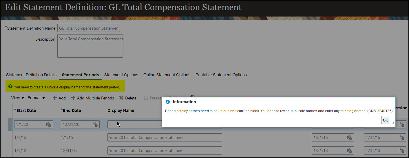 If the assignment security is defined with ASG1 criteria, then the user should be able to view the element entries only from January 1, 2018 to June 30, 2018 and from January 1, 2019 to till today, with the respective payroll entries. They will not be able to view the entries of ASG2 for the period July 1, 2018 to December 31, 2018.