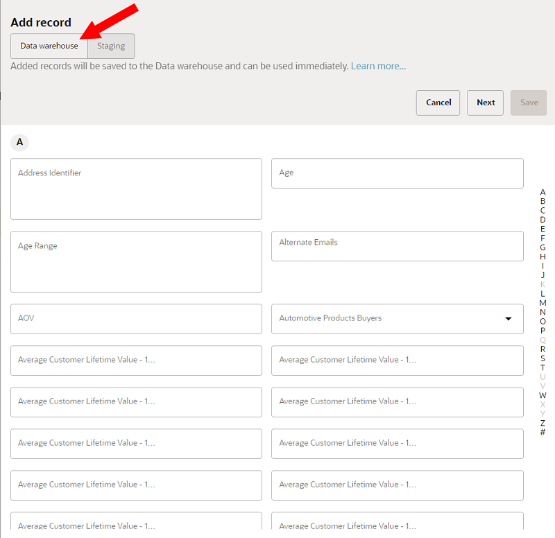 When using the Data viewer to manage records (add, edit, copy), you can send the updates directly to the data warehouse using near real-time ingestion.