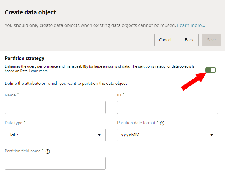 Partition strategies must be set up before the data object is published the first time. After publishing a data object, the partition strategy can't be added or updated.