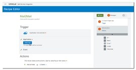 Oracle Self Service Integration Cloud provides a framework for periodically polling a wide range of business applications out of the box as well as any application you add yourself (as long as the application can be polled through calls to a REST API). Any records retrieved in a polling action can be used to trigger actions in other applications. SSI can perform some logic (filter, loop, conditional execution as well as some calculation and conversion) and create a request message to send to a target application. Many recipes are available out of the box, and more can easily be created for all know business applications as well as for those we add ourselves.