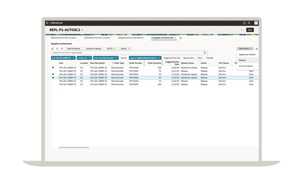 Présentation du produit Oracle Replenishment Planning