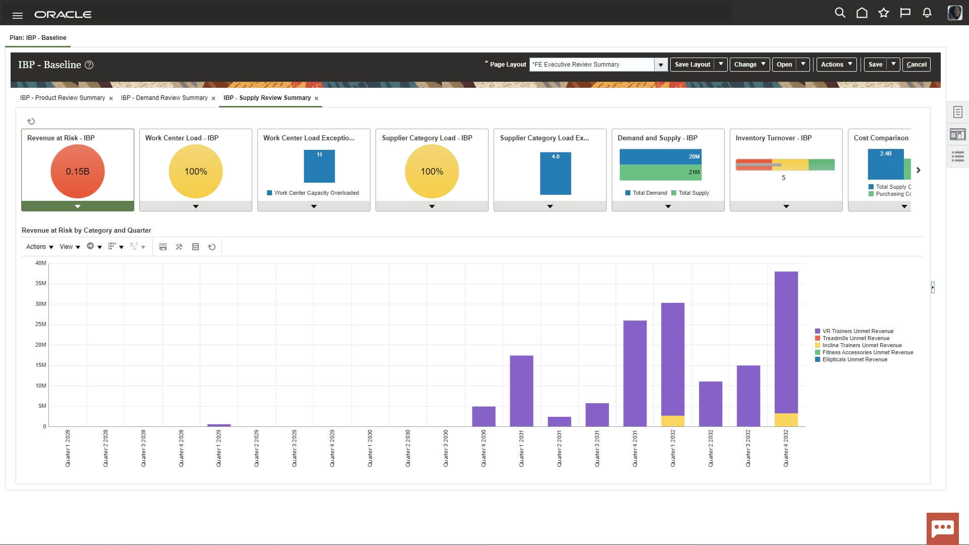 Use Supply Review to analyze supply constraints that could impact your ability to meet demand. Simulate revenue at risk from changes and develop contingency plans to address supply limitations.