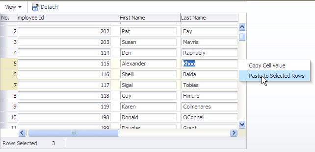 Hint: The functionality can be easily extended to copy and paste the values of multiple columns. All you need to do on the page source is to add additional column names (atributes) to the colname af:clientAttribute tag, which we explore in a minute