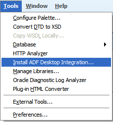 | New Menu Items for deploying runtime, specify preferences, etc. | A number of new menu items are now available to deploy ADF Mobile Client runtime components, as well as to specify preferences for ADF Mobile Client. | ![]() |
