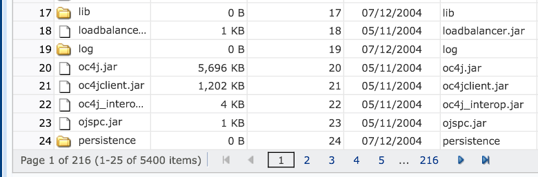 On tablet devices, ADF table now automatically renders as a paginated table, rather than infinite scroll. Instead of scroll bars, the table component is paginated, and displays a footer that allows the user to jump to specific pages of rows, as shown below. The number of rows on a page is determined by the fetchSize attribute.