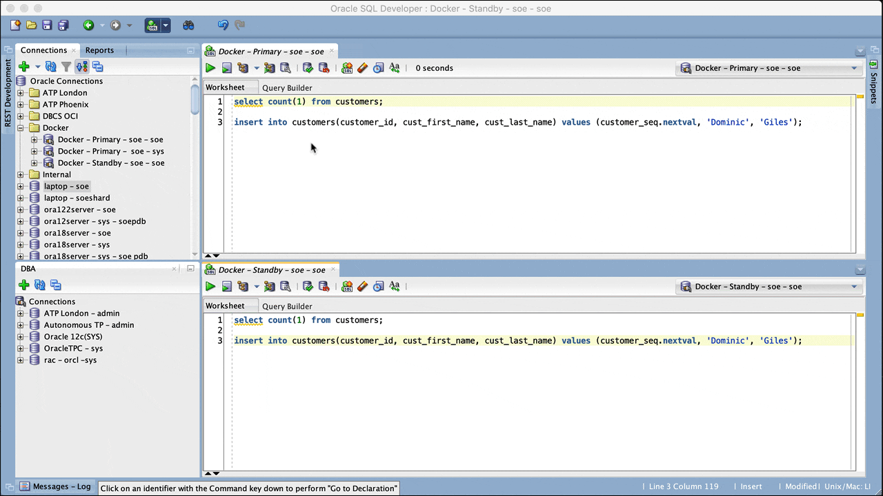 A automação do Oracle Data Guard gerencia uma ou mais cópias sincronizadas de um banco de dados ativo - sem perda de dados no caso de uma interrupção inesperada do banco de dados principal.