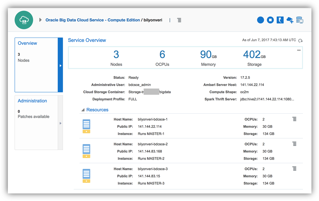 Na minha opinião, a parte mais dificil em se criar um ecosistema Big Data está na execução de muitos projetos de software open source ao mesmo tempo e integrá-los uns com os outros. Existem 3 grandes players no mercado para ajudar os usuários finais a construir uma solução integrada e testada para Big Data: Cloudera, Hortonworks e MapR. A Oracle fez parceria com a Cloudera para construir o Oracle Big Data Appliance e o Oracle Big Data Cloud Service. A Oracle também oferece o serviço “Oracle Big Data Cloud” que é baseado no Hortonworks e que será nosso assunto neste artigo. Criar um serviço “Oracle Big Data Cloud” é simples. Com ele você obtem um cluster big data pronto para uso em cerca de 15 minutos após fornecer as informações básicas, como o nome do cluster, o número de servidores (nós), CPU e tamanho dos discos para cada nó e a senha de administrador.