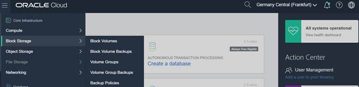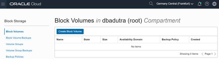 Faça login no Oracle Cloud e clique no Block Storage e selecione o  Block Volumes.