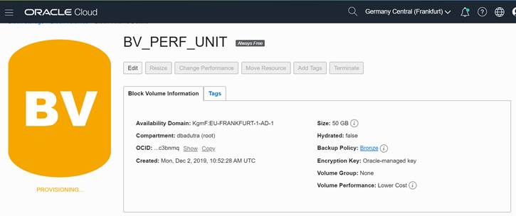 A Oracle introduziu um novo recurso para controlar o desempenho do Block Volume que é o Volume Performance Unit (VPU). É fácil de gerenciar e pode ser controlado com console, API e CLI.