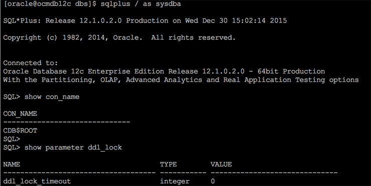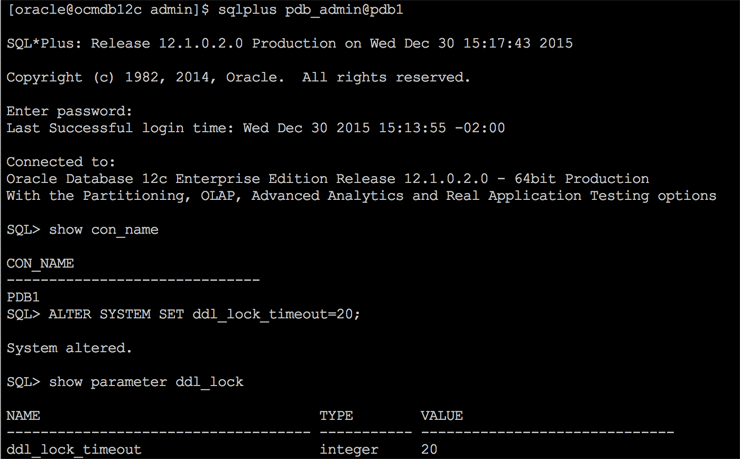 Para alterar os parâmetros de um CDB, basicamente procedemos da mesma forma utilizada anteriormente nos bancos non-CDB. Adicionalmente podemos utilizar a cláusula container.