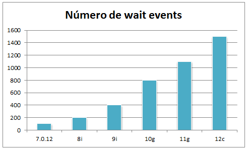 Atualmente na versão 12c contamos com mais de 1.500 eventos de espera(wait events), diferentemente de seus antecessores. O Oracle 11.2.0.3 por exemplo, conta com 1.152 eventos de espera, na versão 10g pouco mais de 800 enquanto na versão 7.3 contava com apenas 104 eventos de espera. (A quantidade de eventos de espera depende da versão, configuração e opções instaladas no RDBMS).