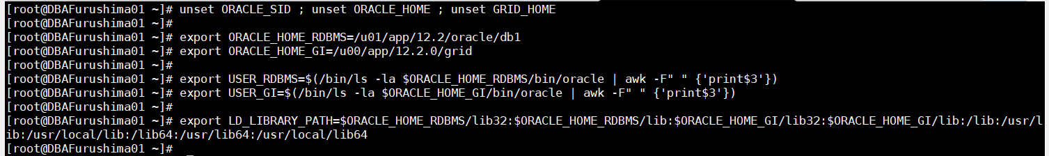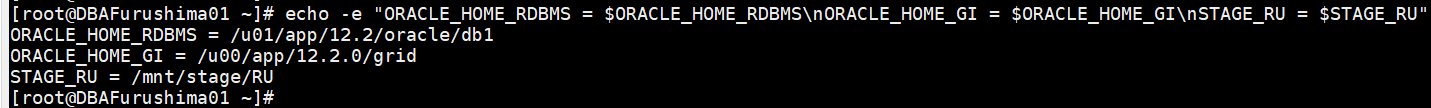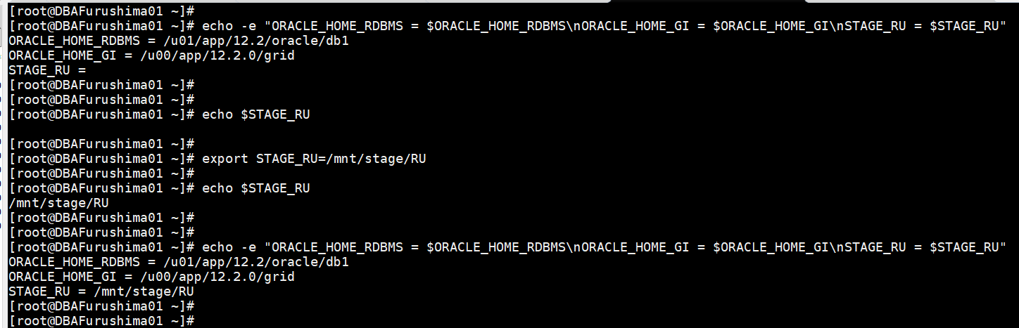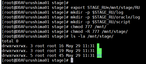 [root @ DBAFurushima01 ~] # export STAGE_RU = / mnt / stage / RU