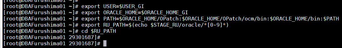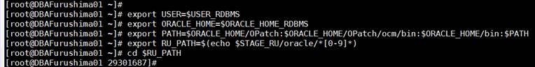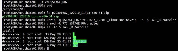 [root@DBAFurushima01 RU]# unzip -q $STAGE_RU/p29301687_122010_Linux-x86-64.zip -d