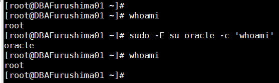 sudo -E su oracle -c 'whoami'