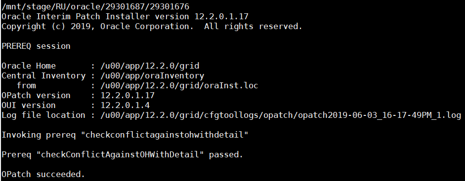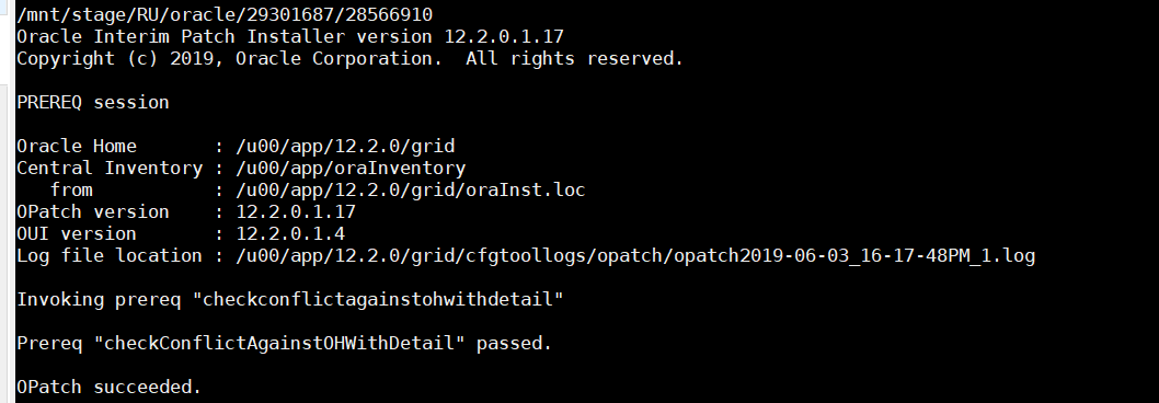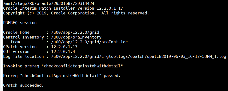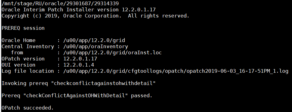Log file location : /u00/app/12.2.0/grid/cfgtoollogs/opatch/opatch2019-05-30_22-45-59PM_1.log