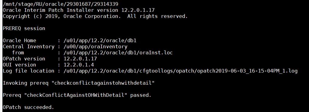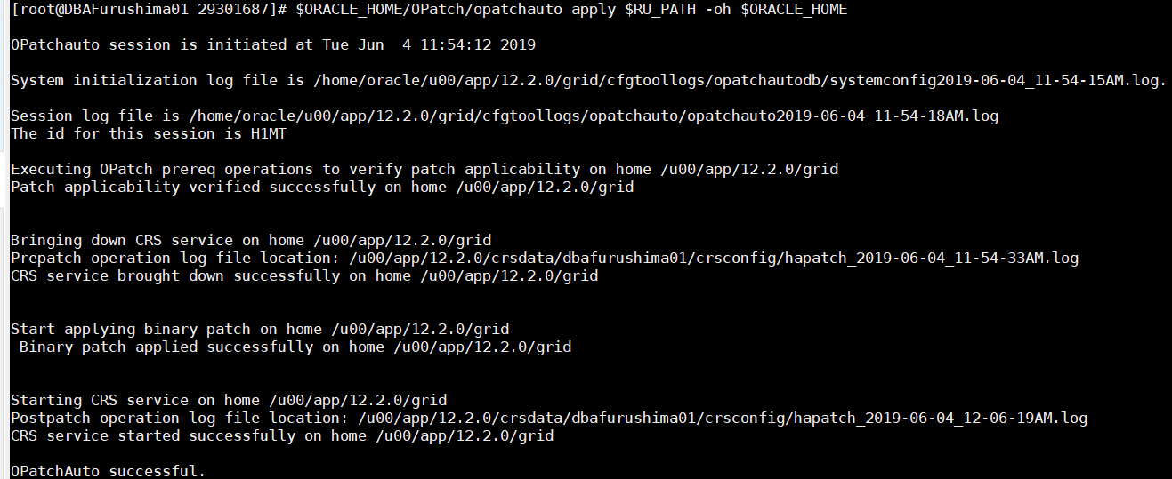 $ORACLE_HOME/OPatch/opatchauto apply $RU_PATH -oh $ORACLE_HOME