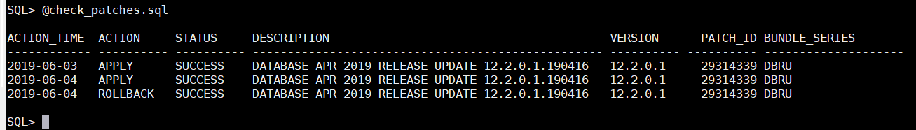 VARCHAR2(80) path 'patchDescription', rollbackable VARCHAR2(8) path