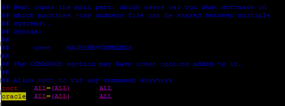 - Adicionar o usuário "oracle" do sistema operacional ao SUDOERS.
