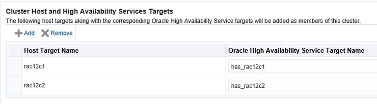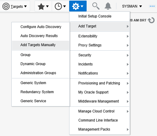 O primeiro passo será adicionar um target para ser monitorado. No nosso exemplo, adicionaremos o monitoramento de um Oracle RAC de dois nós.