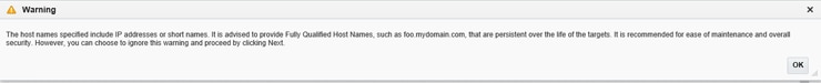 Podemos receber o warning abaixo, mas isso é devido ao nome do host que foi colocado. Basta clicar em “Ok” e depois em “Next”.