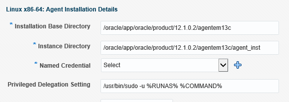 Na seção “Linux x86-64: Agent Installation Details”, vamos adicionar as credenciais do usuário Oracle no target, além das informações da localização do diretório de destino do deploy.