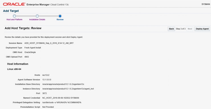 Essa será a nossa primeira ação. Iremos realizar o deploy do cliente do EM13c para o nosso target.