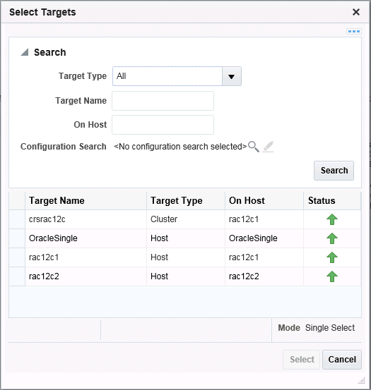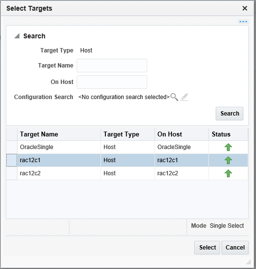 Clicamos na lupa ao lado do campo “Specify Host” e identificamos o primeiro nó do cluster. Clicamos em “Select” para selecionar esse nó.