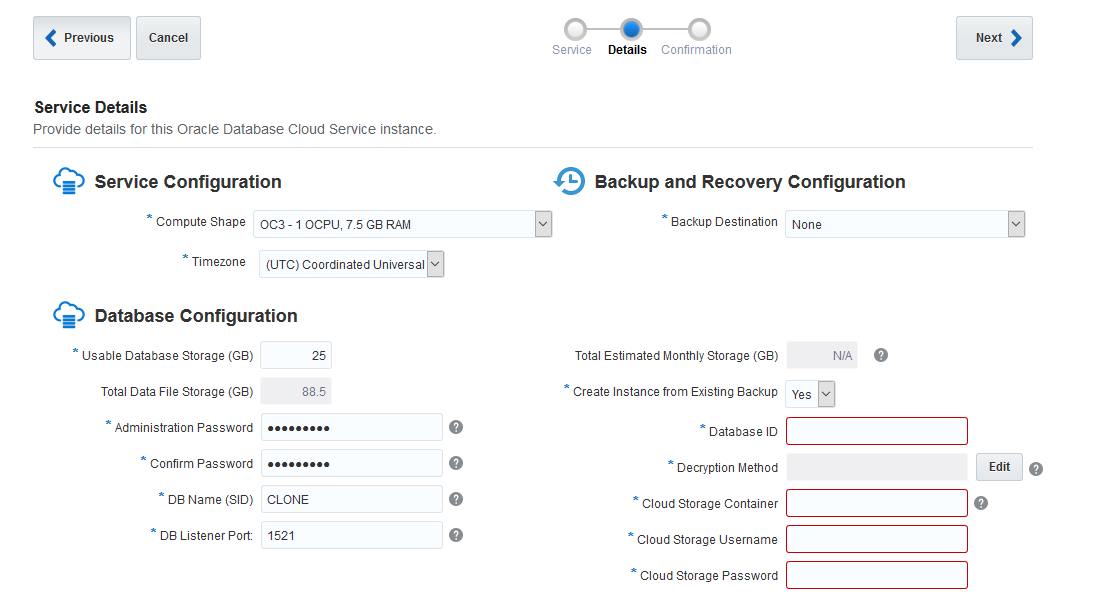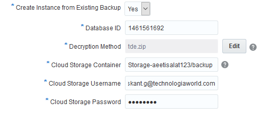 Após selecionar o valor “Yes” no campo “Create Instance from Existing Backup” serão abertas as seguintes opções: