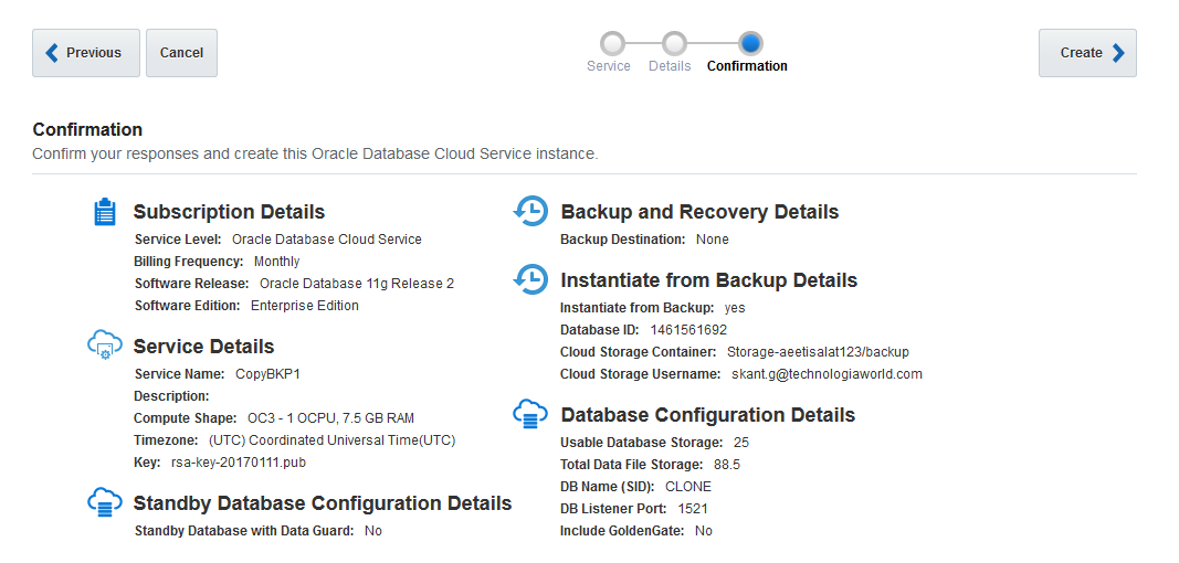 Finalmente confira as configurações e clique no botão “Create” para iniciar a criação do nosso Cloud Database.