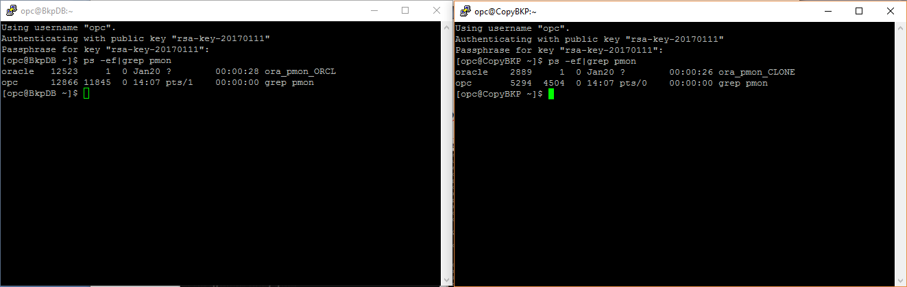 Depois da conexão ter sido criada, verifique se o processo “pmon” existe em cada servidor.
