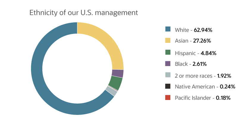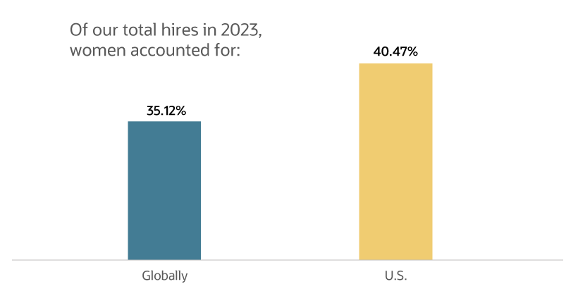 Global innovation takes inclusive leadership and a commitment to advancing diverse representation in tech. We build inclusion into our talent development practices, invest in programs to increase underrepresented talent in leadership roles, and partner with leading organizations to empower diverse perspectives.