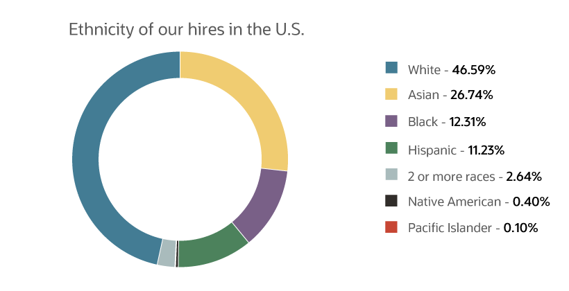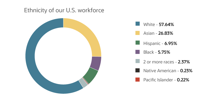Achieving true diversity is a continuous journey, not a one-off destination. We’re constantly working on more inclusive hiring strategies, tracking our progress, and holding leaders accountable. Every day we’re making these numbers more representative of the world around us. For additional demographic information, view our EEO-1 Statement (PDF).